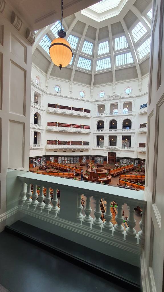Now, I love a library and you’ll often find me in one. But Victoria’s State Library is one of the most beautiful libraries I’ve visited. The LaTrobe Reading Room, (The Dome) with its elaborate octagonal domed ceiling, is especially wonderful. This, in my opinion, is a must-see. You can walk through the Reading room, or you can explore the galleries around it, with their own displays such as ‘World of the Book’.