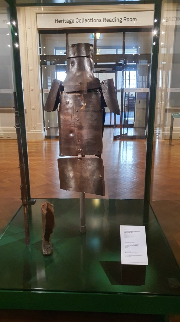 Once you’re finished with your work, and have explored the other exhibitions, you can find Ned Kelly’s armour in the South Rotunda.